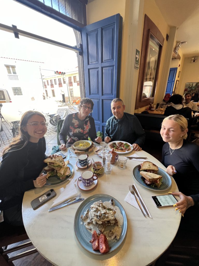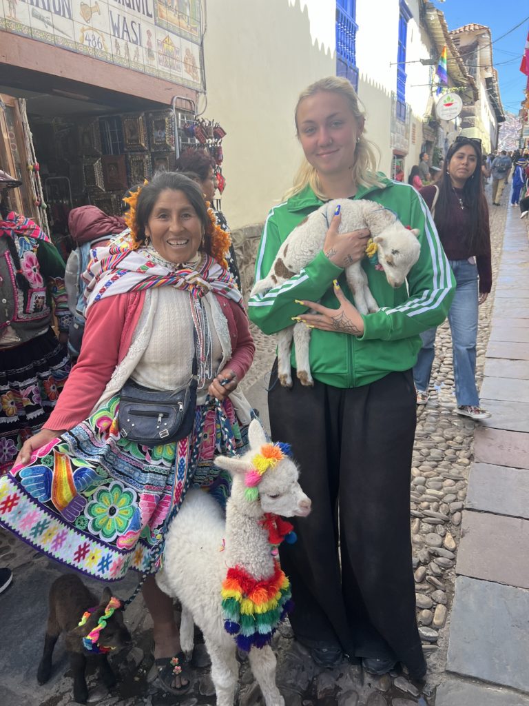 Une fois rentrés du tour, on est allés manger dans le restaurant dans Cusco avec des plats XXL. Mais sur le chemin Morgane s’est fait alpaguée par une Alpaga pour faire des photos ensemble !