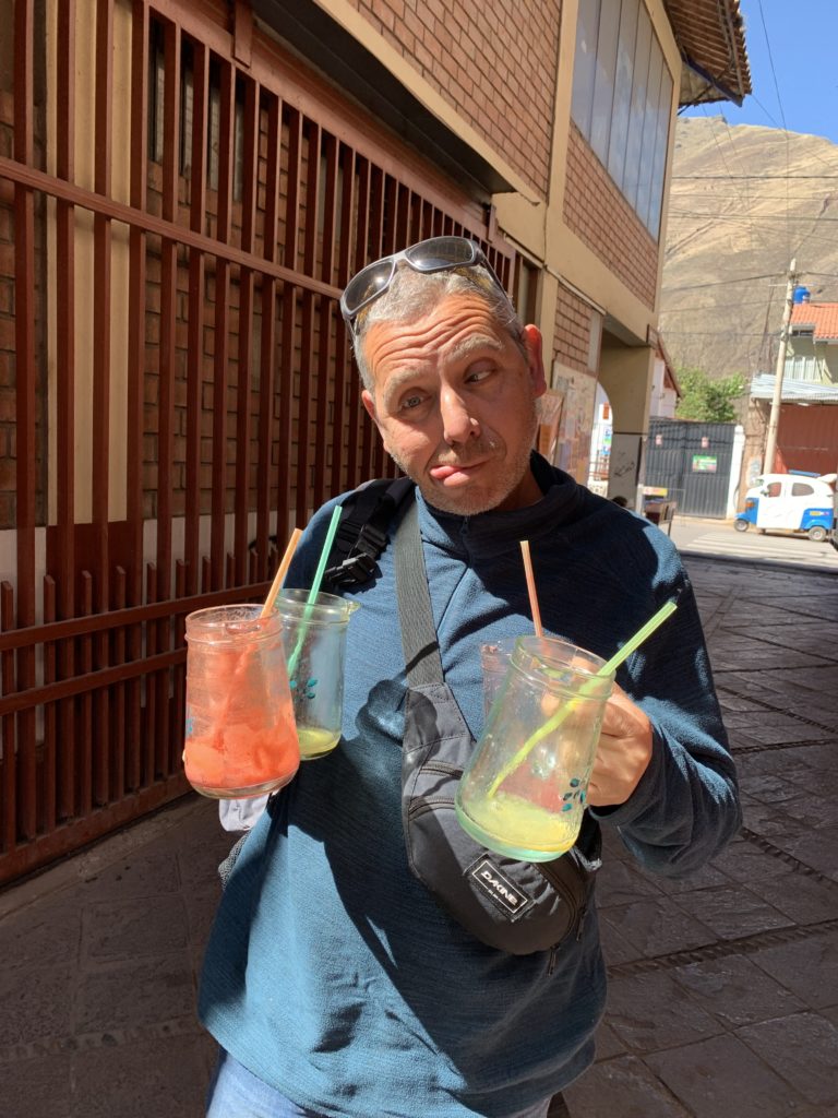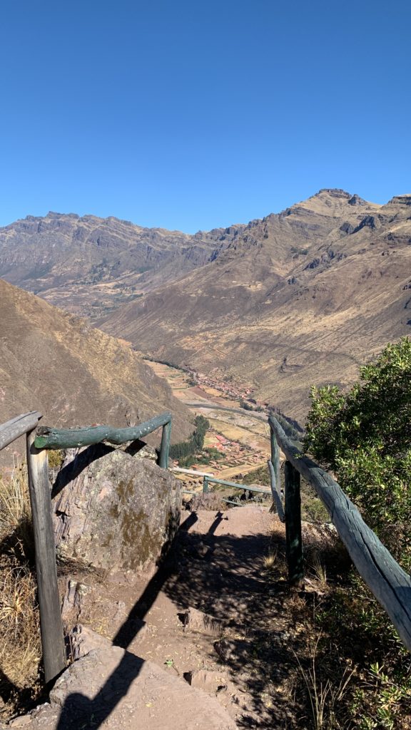 On a pris le bus péruvien direction Pisac pour se rendre à Awana Kancha. Visite d’une ferme d’alpagas, de lamas avec des vigognes et des guanacos en semi-liberté. Présentation du filage et de la coloration naturelle des différentes qualités de laine. Le magasin du site proposait des écharpes en laine fine de vigogne à plus de 30’000 soles donc un peu moins de 10’000 CHF…puis taxi jusqu’à Pisac pour y manger au marché suivi de la visite du site archéologique avec une marche de 3h pour redescendre sur Pisac.