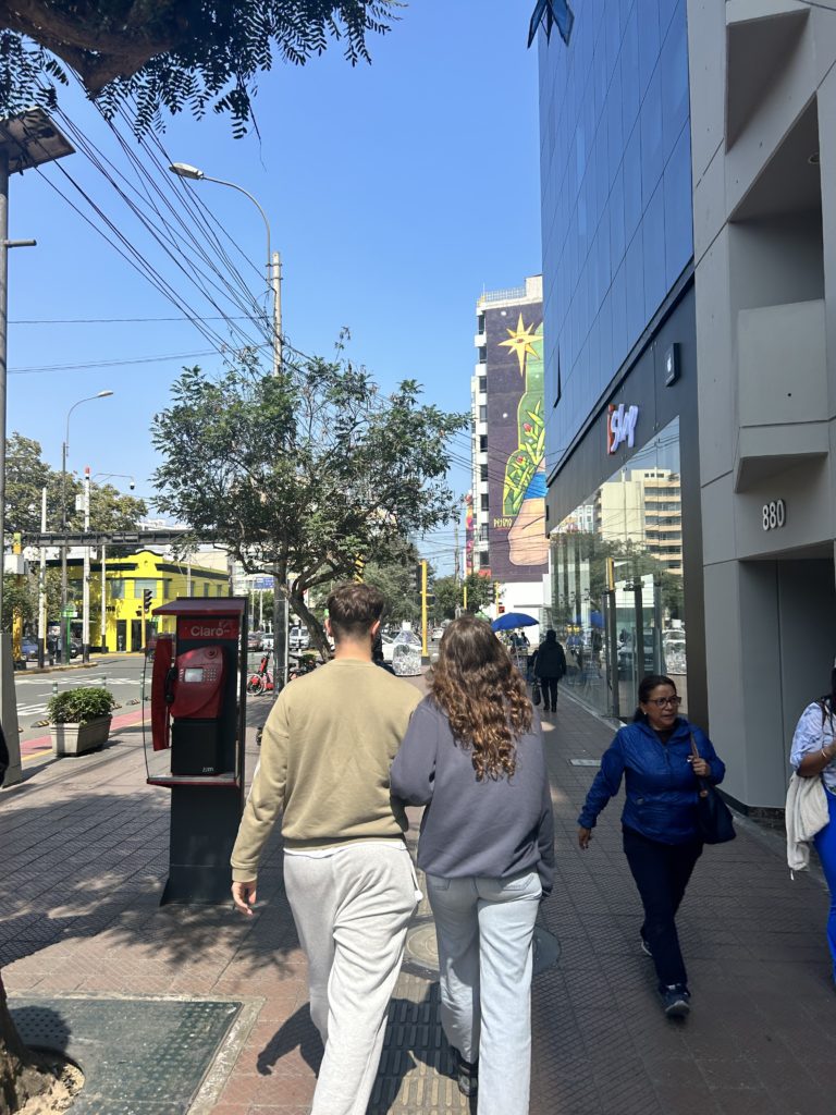 On a visité le quartier de Miraflores, déjeuné des petits sandwichs trop bons avec des jus et on a marché le long de l’océan. On était un peu fatigué mais c’était trop cool !