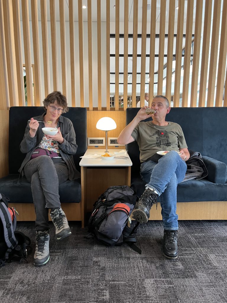 Mais, heureusement, on est arrivé sains et affamés au lounge !