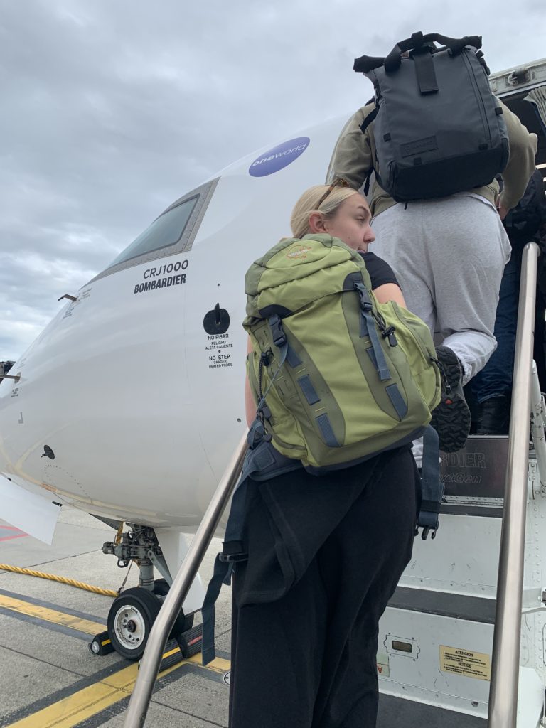 on est sortis de l’avion et même à 21h, on sent la différence de température 🤒